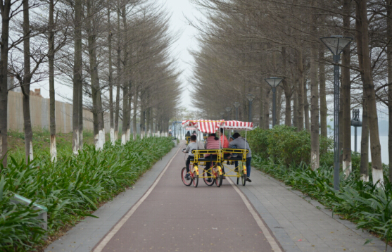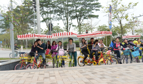 品尝美食后 , , ,,,前往海珠区生物岛 , , ,,,最先自行车环岛之旅。。。。。各人各自租个自行车 , , ,,,骑上环岛嬉戏 , , ,,,既能磨炼身体 , , ,,,又能鉴赏到漂亮的江景 , , ,,,真是再惬意不过!各人以为世间的一切骚动都远离而去 , , ,,,只剩下耳畔的风和眼前的江水。。。。。在欢喜的气氛中 , , ,,,我们竣事了此次愉快的运动。。。。。