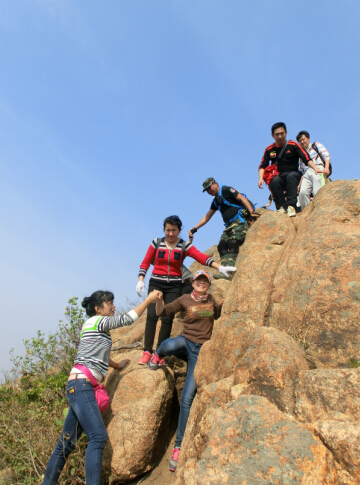 在整个爬山历程中,,,,,充分体现整个团队相互资助、团结协作的融洽的气氛。。。。。。。在平展的蹊径上各人言笑风生,,,,,相互间开着玩笑;;;;;在崎岖的山路上,,,,,各人相互帮扶、相互牵引,,,,,配合度过暂时艰难;;;;;在有人落伍时,,,,,各人相互勉励、支持,,,,,配合前行。。。。。。。正是这种帮助与协作,,,,,让各人配合抵达了最岑岭。。。。。。。