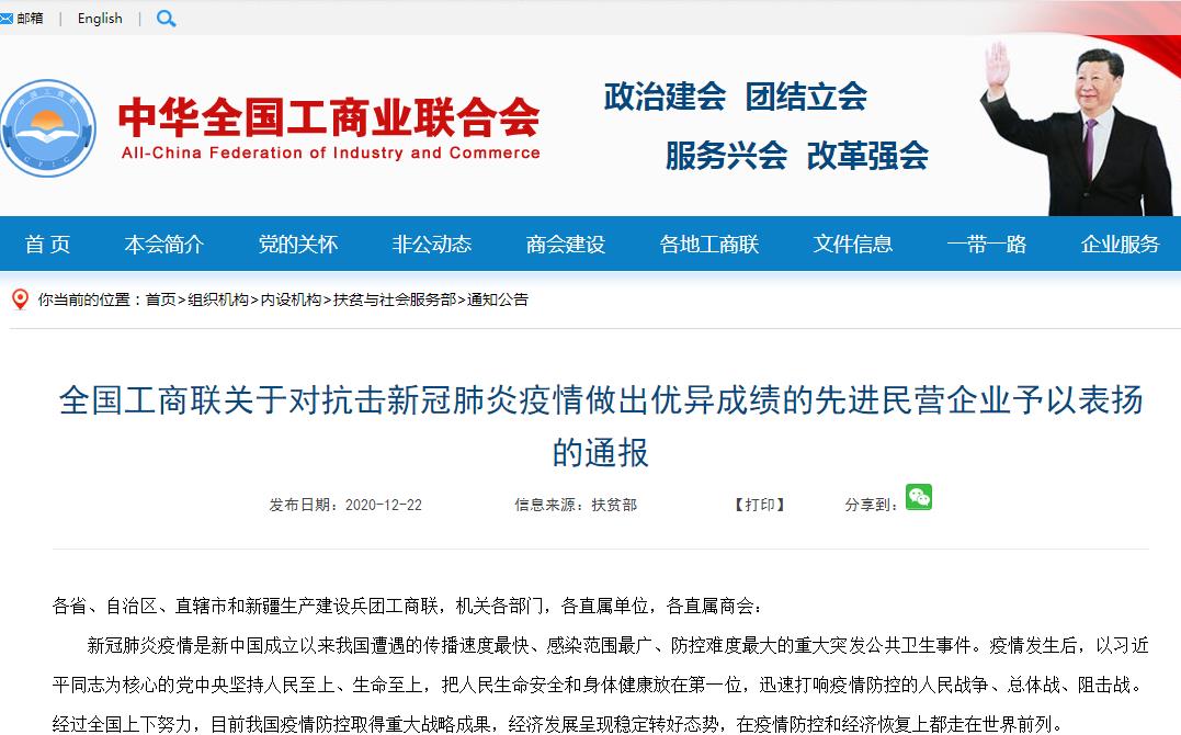 PaÆì½¢Ìü¹ÙÍøÒ©Òµ»ñÆÀÌìϹ¤ÉÌÁª¡°¿¹»÷йڷÎÑ×ÒßÇéÏȽøÃñÓªÆóÒµ¡±